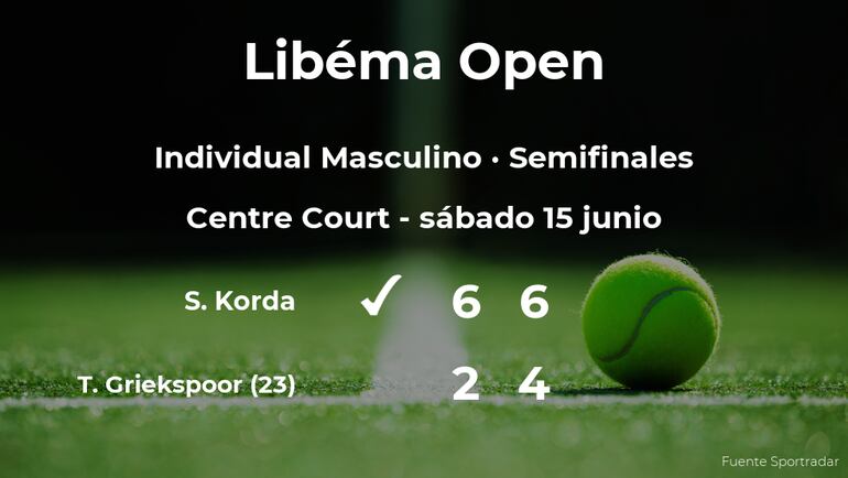 Sebastian Korda, estadounidense y cabeza de serie número 7, ganó en las semifinales del torneo de Rosmalen por 6-2 y 6-4 a Tallon Griekspoor, número 23 de la ATP y cabeza de serie número 6. Con este resultado, el ganador estará en la siguiente fase del torneo de Rosmalen.