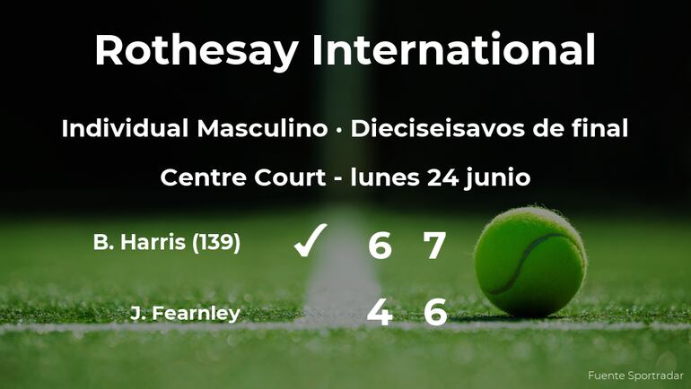 Billy Harris, británico, número 139 de la ATP, ganó en los dieciseisavos de final del torneo de Eastbourne por 6-4 y 7(9)-6(7) a Jacob Fearnley, tenista británico. Con este resultado, el tenista británico se hace con el puesto para los octavos de final del torneo de Eastbourne.