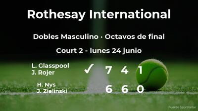 El tenista británico Lloyd Glasspool y Jean-Julien Rojer vencieron por 7(7)-6(3), 4-6 y 1-0 (para desempatar el partido) a Hugo Nys y al jugador polaco Jan Zielinski en los octavos de final del torneo de Eastbourne. Con este resultado, veremos a los vencedores de este partido en la siguiente ronda del torneo de Eastbourne.