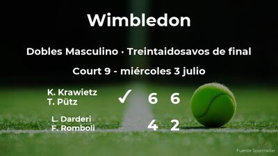 En los dieciseisavos de final, Krawietz y Pütz jugarán contra los ganadores del partido en el que se enfrentarán Alexander Shevchenko y Alexander Bublik contra Yuki Bhambri y Albano Olivetti hoy miércoles a partir de las 20:00 hora española.