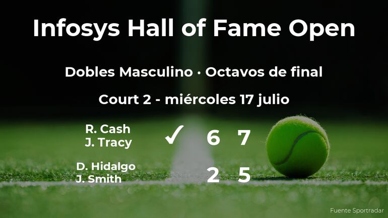 Los jugadores estadounidenses Robert Cash y James Tracy ganaron en los octavos de final del torneo de Newport por 6-2 y 7-5 al ecuatoriano Diego Hidalgo y al jugador australiano John-Patrick Smith. Con este resultado, podremos seguir viendo a los vencedores del partido en la siguiente fase del torneo de Newport, la siguiente fase.