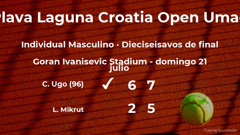 El jugador argentino Camilo Ugo, número 96 de la ATP, venció por 6-2 y 7-5 a Luka Mikrut, tenista en los dieciseisavos de final del torneo de Umag. Tras este resultado, el jugador argentino estará en los octavos de final del torneo de Umag.