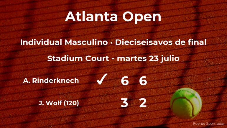 El francés Arthur Rinderknech venció en los dieciseisavos de final del torneo de Atlanta por 6-3 y 6-2 al tenista estadounidense J.J. Wolf, número 120 de la ATP. Tras este resultado, podremos seguir viendo al vencedor del partido en la siguiente fase del torneo de Atlanta, los octavos de final.