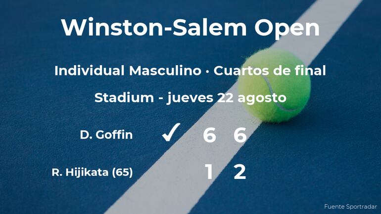 El belga David Goffin venció en los cuartos de final del torneo de Winston-Salem por 6-1 y 6-2 al tenista australiano Rinky Hijikata, número 65 de la ATP y cabeza de serie número 16. Con este resultado, podremos seguir viendo al vencedor del partido en la siguiente fase del torneo de Winston-Salem, la siguiente fase.