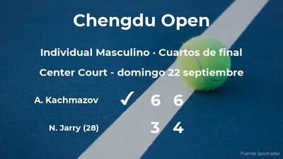 El tenista ruso Alibek Kachmazov venció en los cuartos de final del torneo de Chengdu por 6-3 y 6-4 a Nicolás Jarry, tenista, número 28 de la ATP y cabeza de serie número 3. Con este resultado, Kachmazov consigue clasificarse para la siguiente fase del torneo de Chengdu.