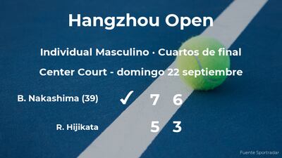 El jugador estadounidense Brandon Nakashima, número 39 de la ATP y cabeza de serie número 4, ganó por 7-5 y 6-3 a Rinky Hijikata, tenista australiano en los cuartos de final del torneo de Hangzhou. Con este resultado, el estadounidense estará en la siguiente ronda del torneo de Hangzhou.