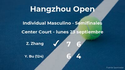 El jugador chino Zhizhen Zhang y cabeza de serie número 6, venció en las semifinales del torneo de Hangzhou por 7(7)-6(3) y 6-4 al tenista chino Yunchaokete Bu, número 124 de la ATP. Con este resultado, veremos al ganador del partido en la siguiente fase del torneo de Hangzhou, la siguiente ronda.