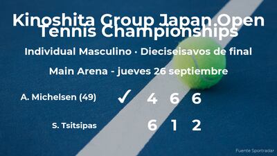 El tenista estadounidense Alex Michelsen, número 49 de la ATP, venció en los dieciseisavos de final del torneo de Tokio por 4-6, 6-1 y 6-2 a Stefanos Tsitsipas, tenista y cabeza de serie número 4. Con este resultado, Michelsen logra clasificarse para los octavos de final del torneo de Tokio.