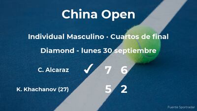 El tenista español Carlos Alcaraz y cabeza de serie número 2, ganó en los cuartos de final del torneo de Pekín por 7-5 y 6-2 a Karen Khachanov, tenista ruso, número 27 de la ATP y cabeza de serie número 7. Tras este resultado, Alcaraz consigue la plaza para la siguiente ronda del torneo de Pekín.
