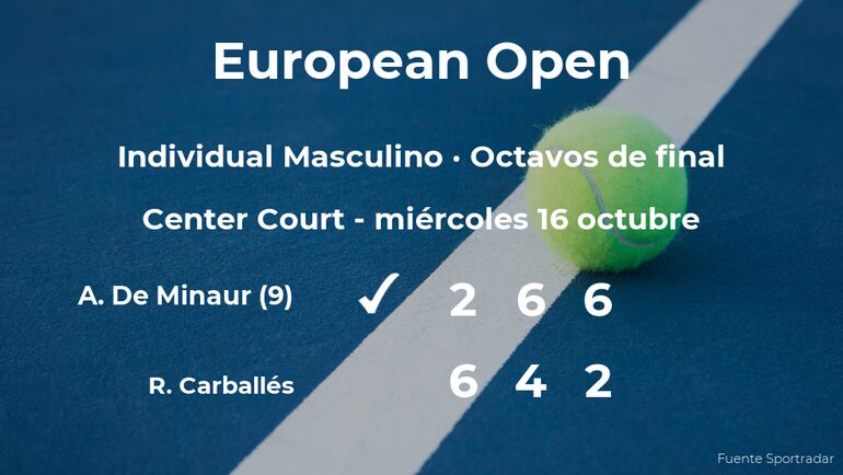 El jugador español Roberto Carballés perdió 2-6, 6-4 y 6-2 en los octavos de final del torneo de Amberes contra Alex De Minaur, australiano, número 9 de la ATP y cabeza de serie número 1. Tras este resultado, seguiremos de cerca la trayectoria del jugador en la siguiente ronda del campeonato.