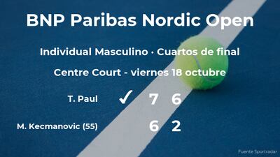 Tommy Paul, estadounidense y cabeza de serie número 4, ganó por 7(11)-6(9) y 6-2 a Miomir Kecmanovic, tenista serbio, número 55 de la ATP, en los cuartos de final del torneo de Estocolmo. Con este resultado, veremos al vencedor del partido en la siguiente fase del torneo de Estocolmo, la siguiente fase.