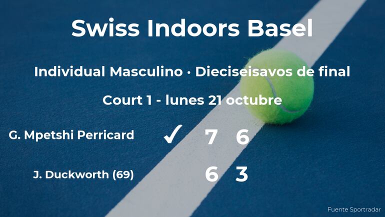 El tenista francés Giovanni Mpetshi Perricard venció en los dieciseisavos de final del torneo de Basilea por 7(7)-6(4) y 6-3 a James Duckworth, tenista australiano, número 69 de la ATP. Tras este resultado, podremos seguir viendo al ganador del partido en la siguiente fase del torneo de Basilea, los octavos de final.