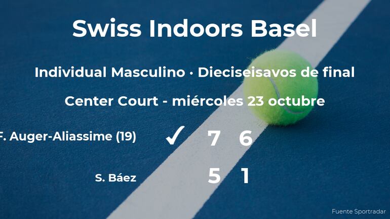 El jugador canadiense Félix Auger-Aliassime, número 19 de la ATP y cabeza de serie número 8, ganó en los dieciseisavos de final del torneo de Basilea por 7-5 y 6-1 al argentino Sebastián Báez. Tras este resultado, veremos al ganador del partido en los octavos de final del torneo de Basilea.