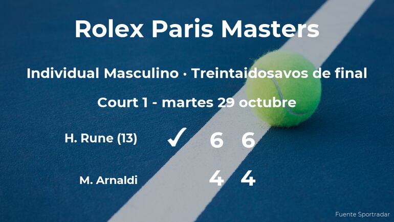 Holger Rune, número 13 de la ATP y cabeza de serie número 13, ganó en los treintaidosavos de final del torneo de París por 6-4 y 6-4 a Matteo Arnaldi, tenista italiano. Tras este resultado, seguiremos de cerca la trayectoria del jugador en los dieciseisavos de final del torneo.