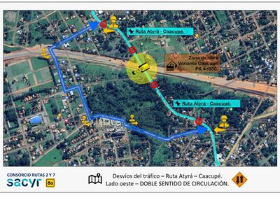 El Ministerio de Obras Públicas y Comunicaciones (MOPC) informó que a fin de avanzar con trabajos de extendido de carpeta de rodadura de la variante de Caacupé, desde esta tarde se realizarán desvíos alternativos en el tramo Atyrá - Caacupé, en la zona del kilómetro 4,8.