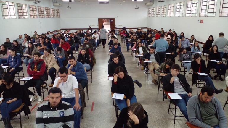 De los 14.568 postulantes habilitados por Itaipú para el examen de conocimientos generales y específicos, alrededor de un 70% se presentaron a rendir ayer con la esperanza de lograr los puntos necesarios para avanzar en el proceso de selección que pretende cubrir las vacancias que existen en Asunción, Ciudad del Este y Hernandarias. En esta edición del llamado, son 220 los puestos laborales disponibles para las seis direcciones de la binacional.
