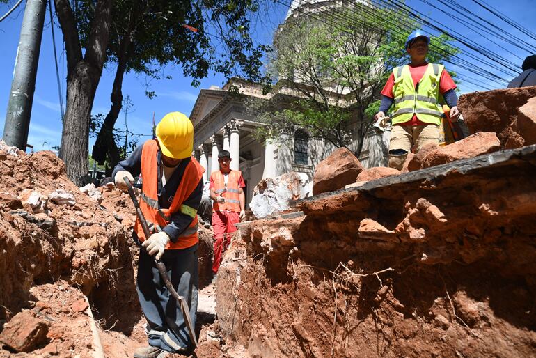 Los trabajos para el cableado subterráneo de la calle Palma, enmarcado por el proyecto “Palma brilla”, están divididos en dos partes: obras civiles y obras electromecánicas. La primera, que implica las excavaciones, colocación de ductos y registros con sus respectivas tapas, presentan un avance general del 43%, contó el jefe del Departamento de Supervisión de Obras de Distribución de la ANDE, Ing. Ernesto Rodríguez.