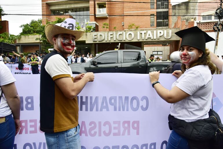 “En el transcurso de la tarde nos juntamos con los compañeros y recibimos el correo donde reconfirmamos que se nos echó”, contó ayer en medio de la manifestación en la que otros, como él, pedían ser escuchados por el presidente de la República, Santiago Peña.
