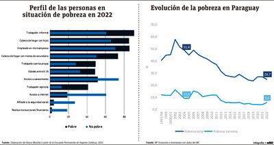 Aunque el avance haya sido significativo en materia social y económica, el estudio menciona que la pobreza en Paraguay tiene rostro de jóvenes, trabajadores informales y personas con bajo nivel educativo.