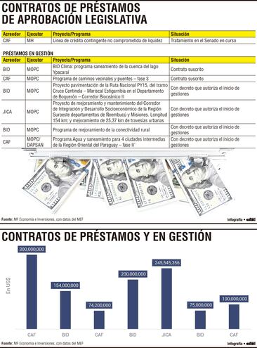 Dentro de los préstamos en gestión, destacan seis proyectos que suman el total de US$ 848,7 millones. Entre ellos, dos ya cuentan con contratos suscritos. A decir: