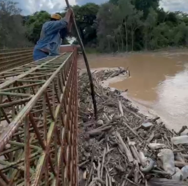 “El canal del río está taponado de basura, palo bobo y sedimento, en un puente privado de la estancia Anita. Queremos la máquina anfibia para limpiar y permitir la circulación del agua. Este puente está atajando el cauce; por eso se produjo el desborde”, señaló Natalia Lovera, vecina de la zona.