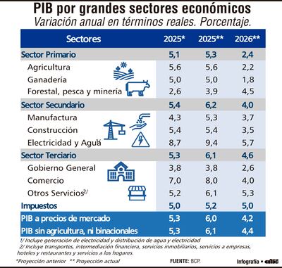 El BCP prevé un crecimiento del 4,2% para el presente año, esto tras un crecimiento del 6% proyectado para el 2025. “Al segundo mes ya tenemos perspectivas positivas de alza, es importante seguir manteniendo este crecimiento sostenido”, afirmó.