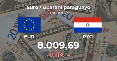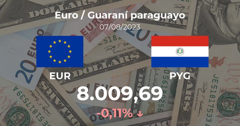 El Euro / Guaraní paraguayo se negocia a las 09:00 horas a 8.009,69 PYG, lo que implicó un cambio del 0,11% con respecto a la cifra de la jornada previa, cuando marcó 8.018,51 PYG.
