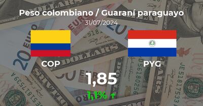 El Peso colombiano / Guaraní paraguayo se paga a las 09:00 horas a 1,85 PYG, lo cual supuso un cambio del 1,1% si se compara con los 1,83 PYG de la sesión previa.