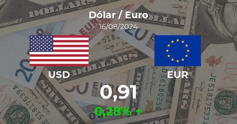 El Dólar / Euro se cotiza a las 09:00 horas a 0,91 euros, lo cual implicó una mejora del 0,28% frente a la cifra de la jornada anterior, cuando cotizó a 0,91 euros.