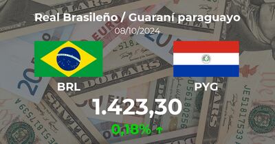 El Real Brasileño / Guaraní paraguayo se negocia a las 09:00 horas a 1.423,30 PYG, lo que supuso un incremento del 0,18% frente a la cifra de la sesión previa de 1.420,70 PYG.