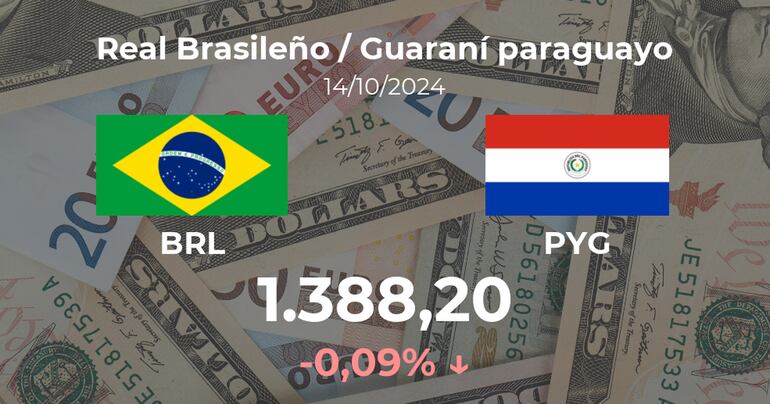 Tras la apertura el Real Brasileño / Guaraní paraguayo se paga a las 09:00 horas a 1.388,20 PYG, lo que implicó un cambio del 0,09% si se compara con la cifra de la jornada previa, que fue de 1.389,48 PYG.