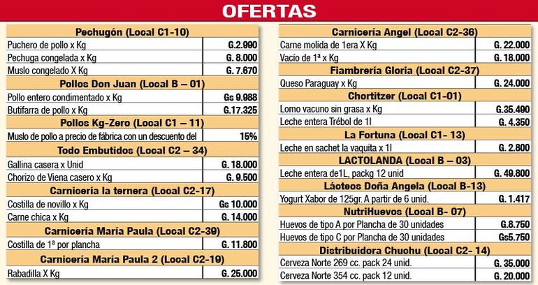 Debido al éxito de esta feria semanal, los locatarios de otros rubros del mercado decidieron volver a promocionar algunos de sus productos de la canasta familiar como pollo, carne, huevos, embutidos, queso, leche, yogurt y cerveza.