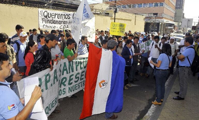 Cerca de 300 funcionarios se manifestaron ayer frente al Ministerio de Agricultura y Ganadería en reclamo de tres meses de salario.