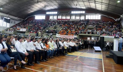 El estadio de la Secretaría Nacional de Deportes de Asunción tuvo un lleno total durante la actividad, en sus dos sectores de graderías y en la cancha, e incluso hubo gente que ya no pudo ingresar. En el comienzo, hablaron el director paraguayo de Itaipú James Spalding y dos productores: María Elena Sánchez, en representación de las mujeres rurales; y Alejando Colmán, labrador de la zona de Lima, San Pedro.