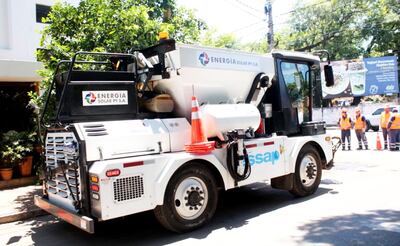 Según Essap “el camión posee una máquina autopropulsada que utiliza asfalto caliente dispuesto en el depósito del mismo, para garantizar su máxima eficiencia de adherencia y con la cual se prevé la reposición de asfalto en 240 puntos de manera semanal y que trabaja con productos químicos biodegradables y ecológicos certificados internacionalmente”. Su primera tarea fue en la avenida Choferes del Chaco el martes último.