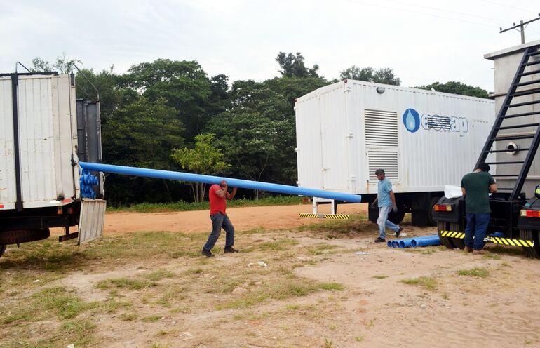 Se intensificaron los trabajos y llevaron al sitio las tuberías que deben ser colocadas en una extensión de aproximadamente 750 metros para conectar a la red principal. Asimismo, el lunes se iniciará la construcción de una base de hormigón armado para uno de los contenedores que requiere estabilidad, se anunció.