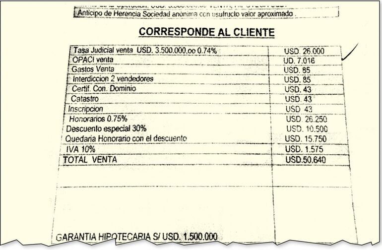 En la mayoría de los casos los montos por la venta de propiedades fueron millonarios. Según un documento al que accedió nuestro diario, sobre una propiedad en Alto Paraná se pagó unos 3.500.000 dólares por la venta. El 0,20 por ciento en concepto de impuesto por la transferencia de inmuebles, unos 7.016 dólares, terminó en manos de la Opaci (ver facsímil).