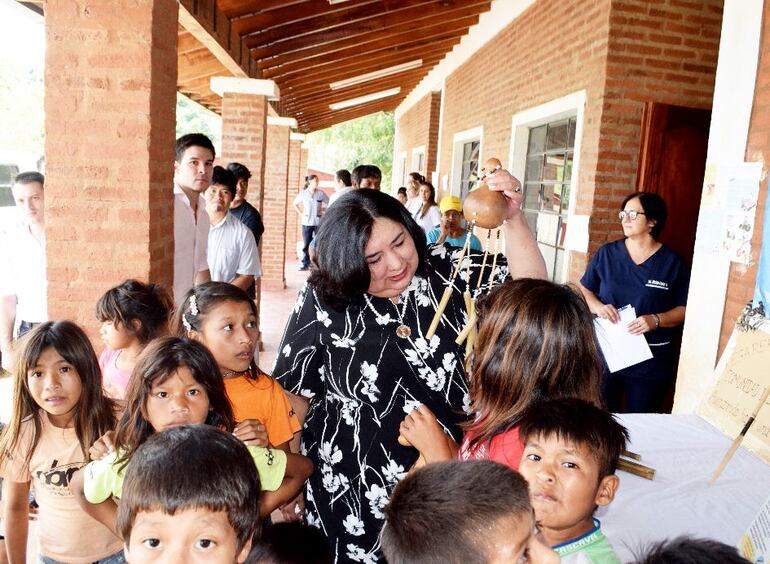 La ministra Martínez visitó la comunidad “Guaviramí”, habitada por nativos mbya guaraní en este distrito.