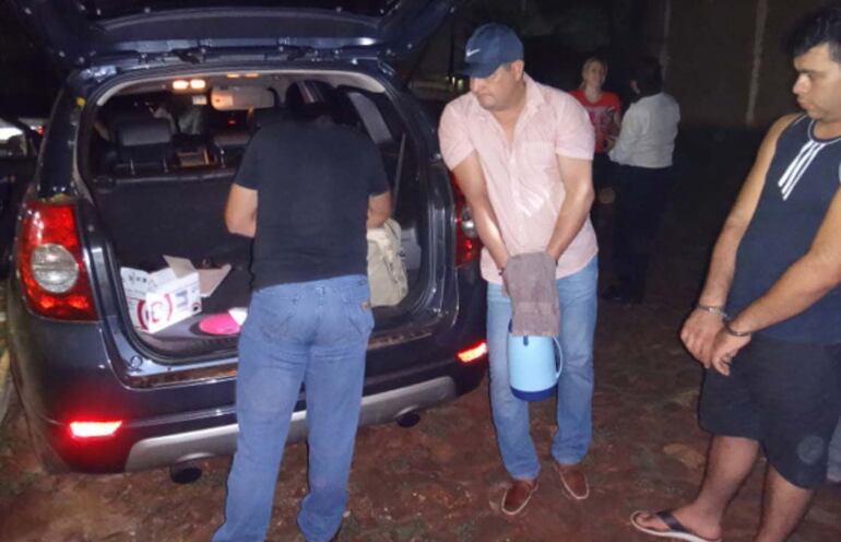 Poco antes de la medianoche del jueves, agentes especiales de la Secretaría Nacional Antidrogas (Senad) interceptaron a los sospechosos sobre una calle del barrio 23 de Octubre. Tras una minuciosa revisión, los investigadores hallaron en la valijera del vehículo una caja de cartón en la que estaban los tres panes de la droga, que totalizaron 3,189 kilogramos, a más del arma.