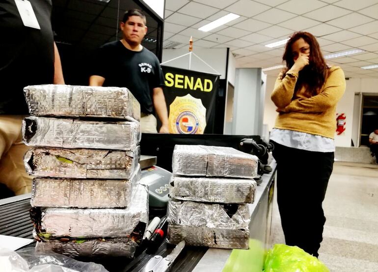 La fiscala que encabezó el procedimiento, Lorena Ledesma, explicó anoche en el programa Momento Justo de radio ABC Cardinal 730 AM que la compatriota Zully Beatriz Orué, de 34 años, pretendía hacer pasar la droga escondida entre plantas de menta’i.