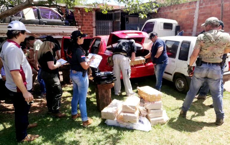 La comitiva, integrada por agentes de la Senad de la Regional N° 3 de Encarnación y la fiscala Raquel Bordón, se trasladó hasta una vivienda ubicada en el barrio Jardín de dicha localidad. Según los datos, el inmueble funcionaba como depósito de una importante cantidad de marihuana prensada, lista para ser enviada en un doble fondo de un transporte a la Argentina.