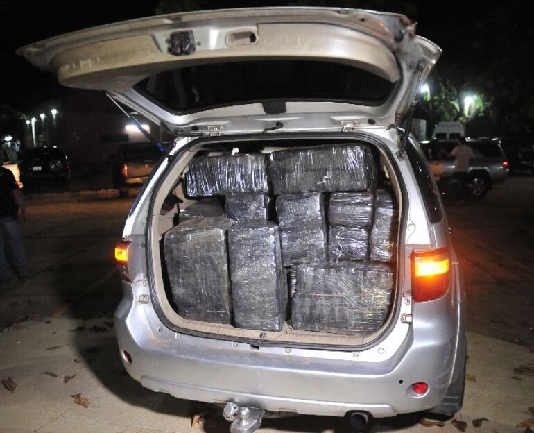 Los informantes añadieron que las bolsas cargadas con marihuana fueron encontradas dentro de una de las camionetas, una Toyota Fortuner, gris, con chapa BCF 817, que era escoltada por otro vehículo de las mismas características pero presumiblemente de la marca Mazda, en el que iban el financista y parte del grupo.