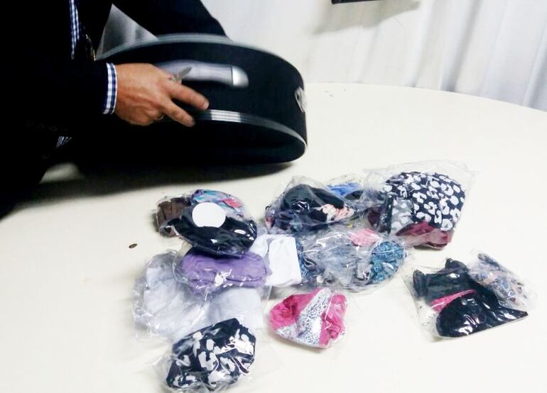 A raíz de la sospecha inicial, los agentes incautaron la valija y en la mañana de ayer la abrieron en presencia del juez penal de garantías Óscar Aníbal Delgado. Un 1,440 kilogramos de la droga estaba oculta en la estructura del maletín, mientras que los otros 574 gramos del “polvo blanco” estaba impregnado en las prenda intimas femeninas.