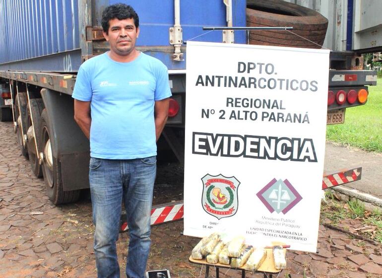 El detenido es Élido Ortega (45), domiciliado en la fracción “Laura Isabel” de la ciudad de Caaguazú. La droga, distribuida en ocho panes, fue encontrada por los agentes de la citada unidad policial en el eje trasero de un tractocamón Scania 124 de color blanco y matrícula CBC 649, con una carreta tipo semirremolque, gris con chapa BEH 668. Este último, a su vez, transportaba un contenedor azul que se encontraba vacío.