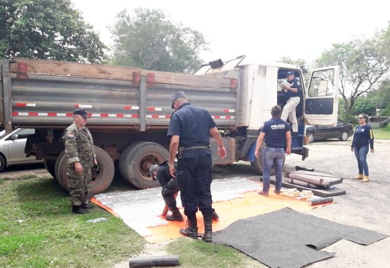 De acuerdo con lo relatado por los agentes, la carga de marihuana de buenísima calidad era transportada en un camión volquete Scania con matrícula CEC-876, que esta registrada a nombre de Ulices Fabián Cubas, domiciliado en Coronel Oviedo.