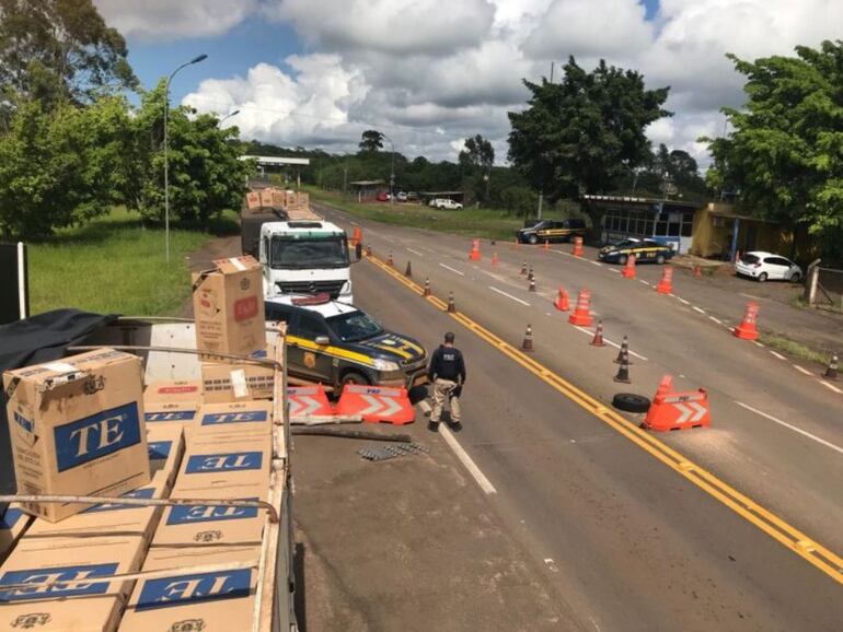 Alrededor de las 8:00 de este viernes, 800.000 paquetes de cajetillas de cigarrillos paraguayos fueron requisados de dos camiones que transitaban por la ruta BR 487, en el citado municipio del noreste de Paraná. La mercadería es de la marca TE, perteneciente a la empresa Tabesa, cuyo accionista mayoritario es el presidente Cartes.