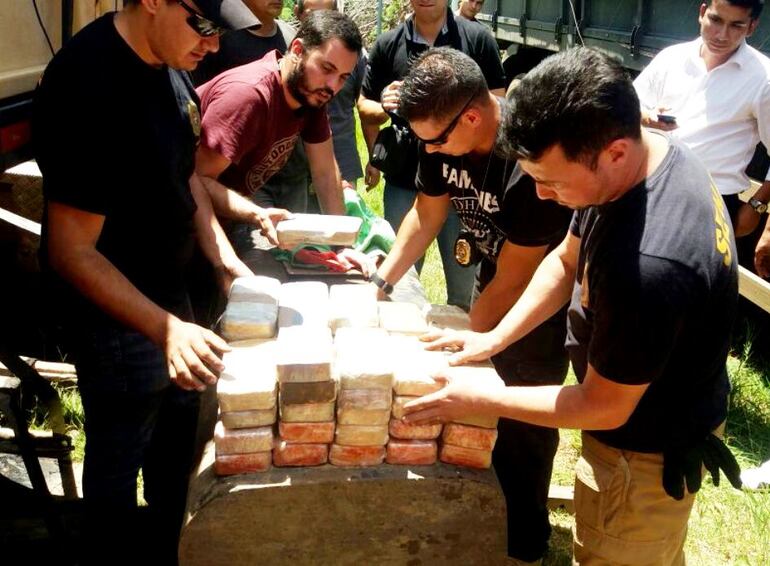 El camión después fue llevado a la base de la Senad, donde la fiscala Elva Cáceres dispuso la revisión del mismo y encontraron 176 paquetes de cocaína que pesaron 180 kilos y 620 gramos. Según los agentes, esa cantidad de droga tiene un precio estimativo de dos millones de dólares en esta región.