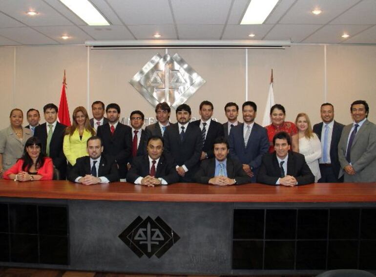 El fiscal general Javier Díaz Verón recibió a Denis Pavez Farías, fiscal de la comuna de Puente Alto de Santiago de Chile; César Torres, juez del Trabajo de Santiago; Mario Cayul, juez de la Unión; Gonzalo Quiroz, juez civil de Arica; Miguel Santibáñez, juez penal de Copiapó; Bernardo Bustamante, juez de los Vilos; Paulo Muñoz, juez de Diego de Almagro, y Rubén Bustos, juez de garantía de Vicuña, además de Sergio Allende y Víctor Covarrubias, relatores de la Corte de Apelaciones de Santiago.