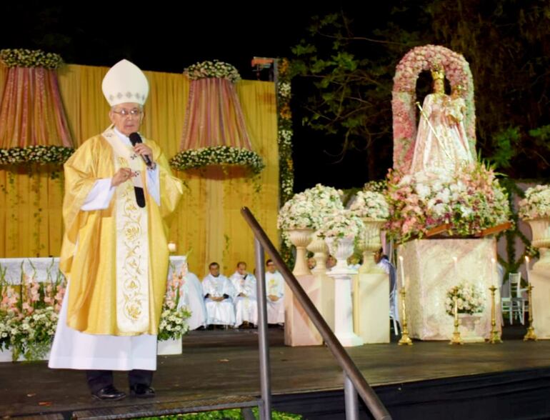LUQUE (Gladys Villalba, corresponsal). Miles de devotos de la protectora de los luqueños llegaron anoche hasta el santuario Nuestra Señora del Rosario a pesar de la intensa lluvia caída en todo el día. La eucaristía se oficio en el predio del templo y participaron el monseñor emérito Pastor Cuquejo, el monseñor Zacarías Martínez, el vicario y cura párroco de Limpio Aldo Bernal, entre otros religiosos.
