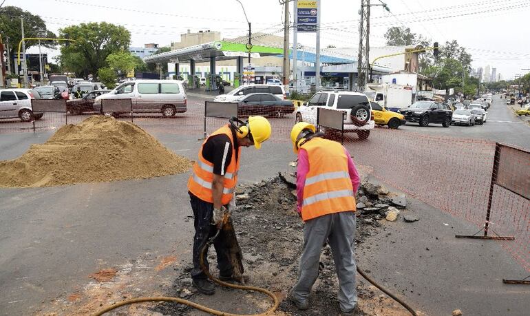 Este artículo tiene 8 años de antigüedad Esta semana seguirán las dificultades en el tránsito sobre la Av. Mcal. López y Santa Teresa por la obra de instalación de alcantarillado sanitario de la Empresa de Servicios Sanitarios del Paraguay (Essap). Por el cierre de la calzada de salida de Asunción se usa la calzada de entrada en doble sentido.